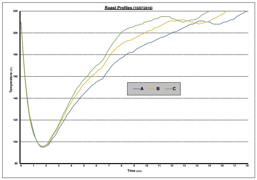 At these meetings the same 5 roasts we cupped and tasted. It was the roasters mission to identify which of the first three were underdeveloped, balanced and overdeveloped coffee roasts. These were labelled A, B and C.